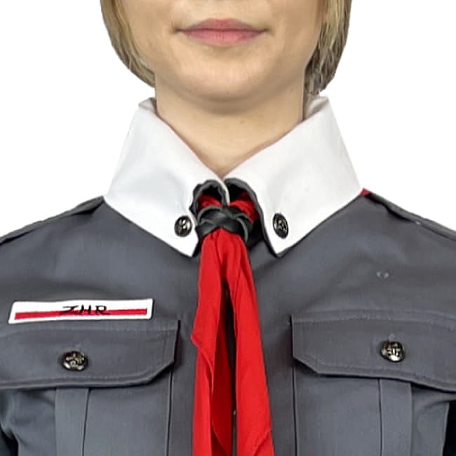 Jednym z najczęstszych błędów jest nieprawidłowe ułożenie chusty na ramionach. Zbyt wąsko rozłożona chusta sprawia wrażenie przypadkowej i nieestetycznej, natomiast zbyt luźno opadające końce mogą przeszkadzać podczas ruchu. Częstym problemem jest również krzywo zawiązany węzeł lub nierówne końce chusty, co zaburza symetrię munduru i świadczy o braku dbałości o szczegóły.